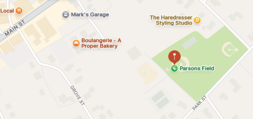 We are located at the back of Parsons Field. Look for the gray building behind the playground.